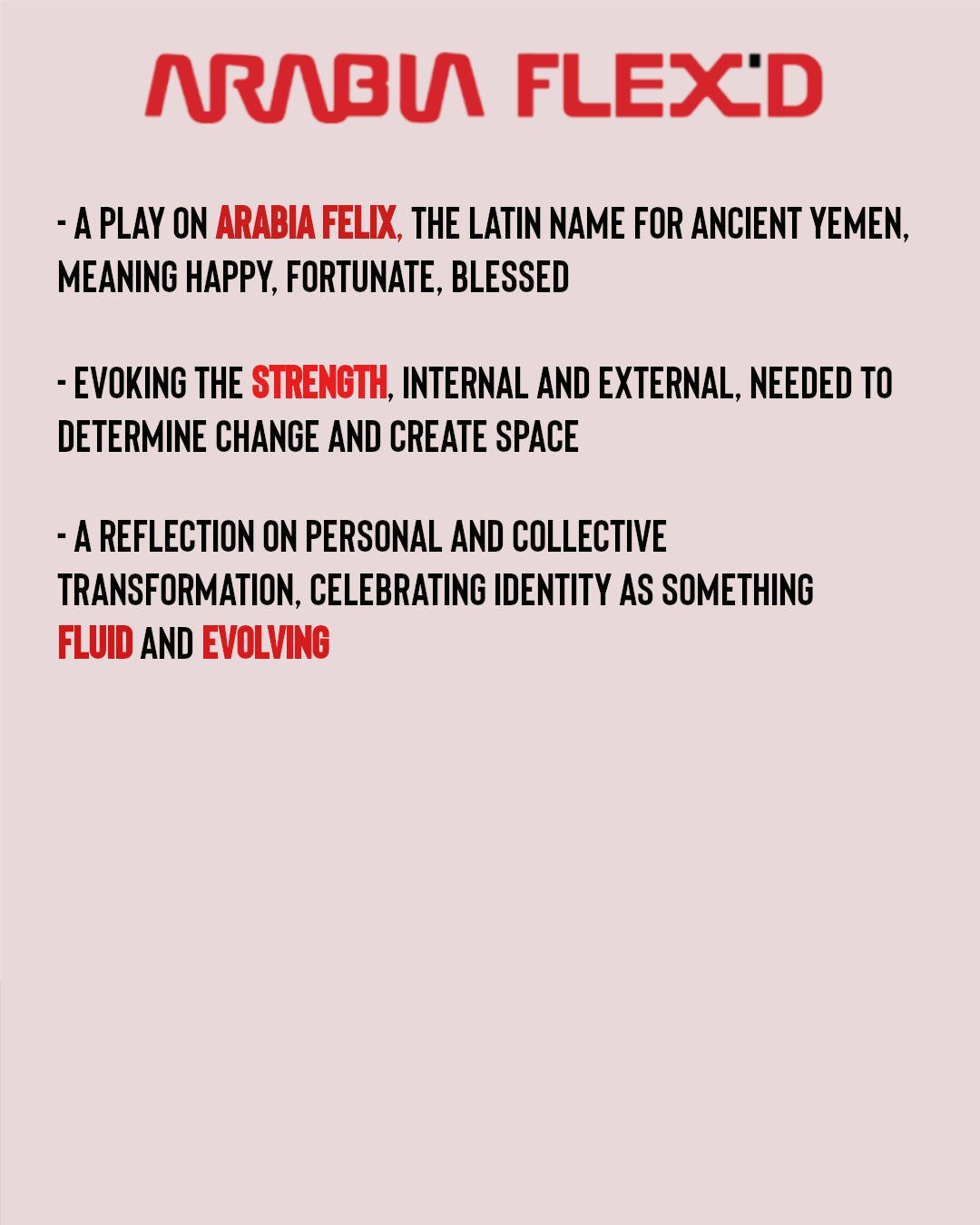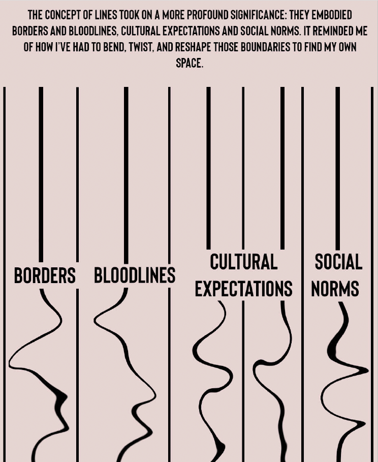 At its core, Arabia Flex’d is about transformation. The project uses lines as both a visual and symbolic thread. Where the bounds of borders and bloodlines, cultural and religious boundaries, are stretched, warped, and even broken. The project questions who gets to define belonging, how lineage shapes us, and what it means to redraw the boundaries of self.